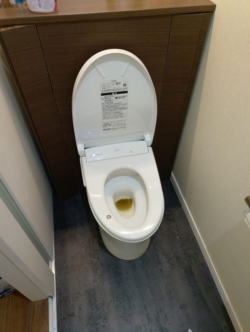 トイレの水を流そうとすると、便器内の水位が上がり、水を流すことができない状態でした。