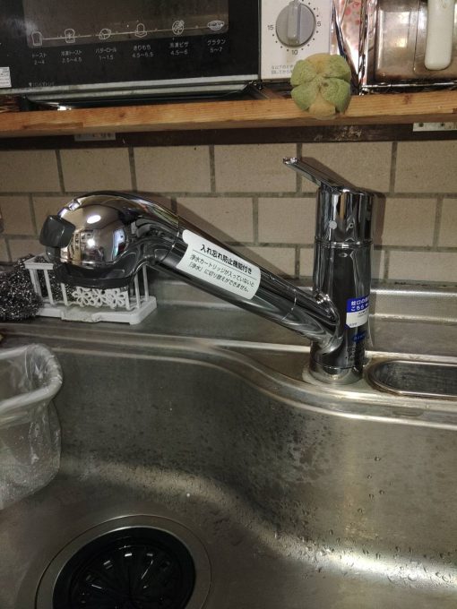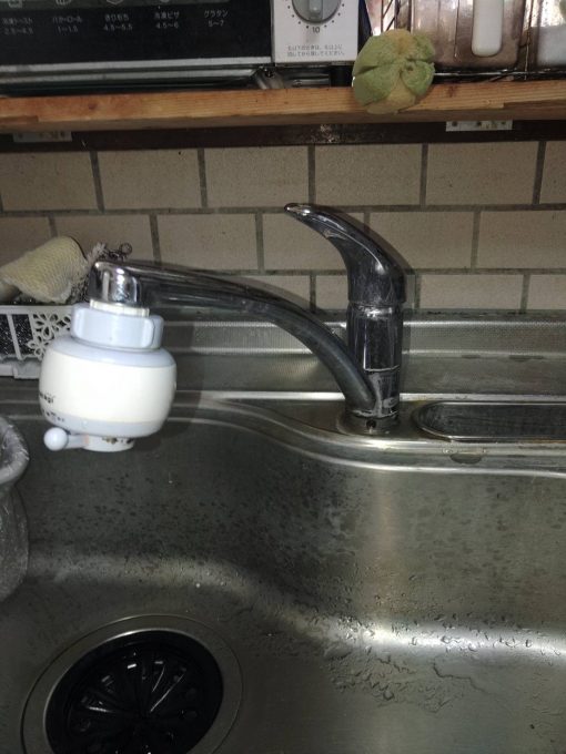 蛇口先端部にタカギ製の浄水器がついていましたので、今回は浄水カートリッジ内蔵のタカギ製の蛇口を設置させていただきました。