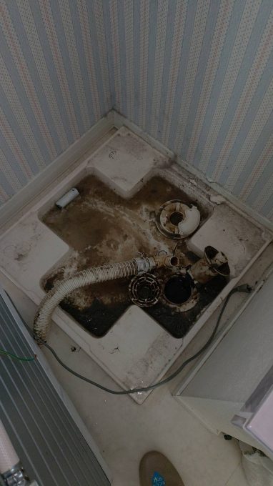 排水トラップにかなり汚れがつまっていました。排水管の先はスムーズに流れて行くので、トラップ清掃をさせて頂きました。洗濯機パンもキレイにお掃除させて頂きました。