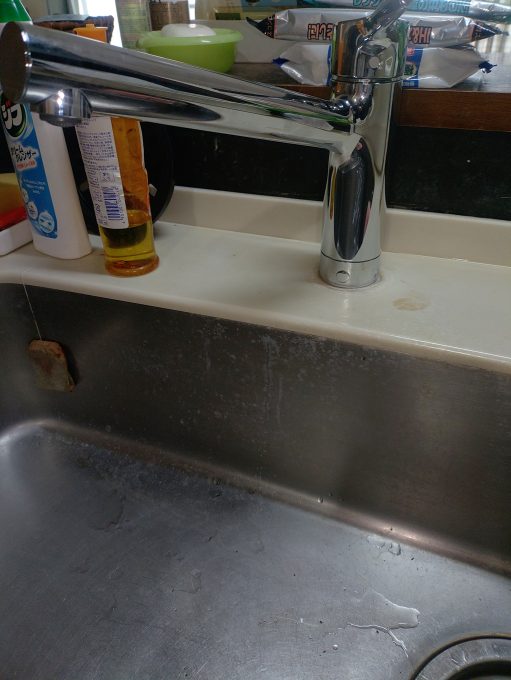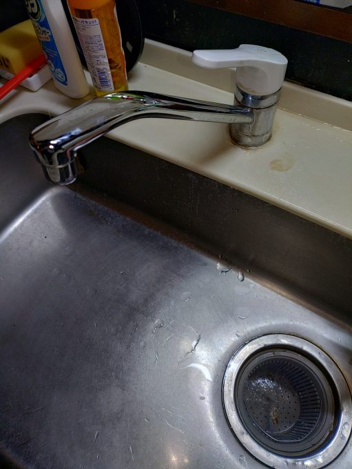 台所蛇口のレバーを締めても、吐水口より水がポタポタと漏れてくる状態でした。水漏れは以前からあったそうですが、数日前から悪化してきたため、修理を依頼されたそうです。